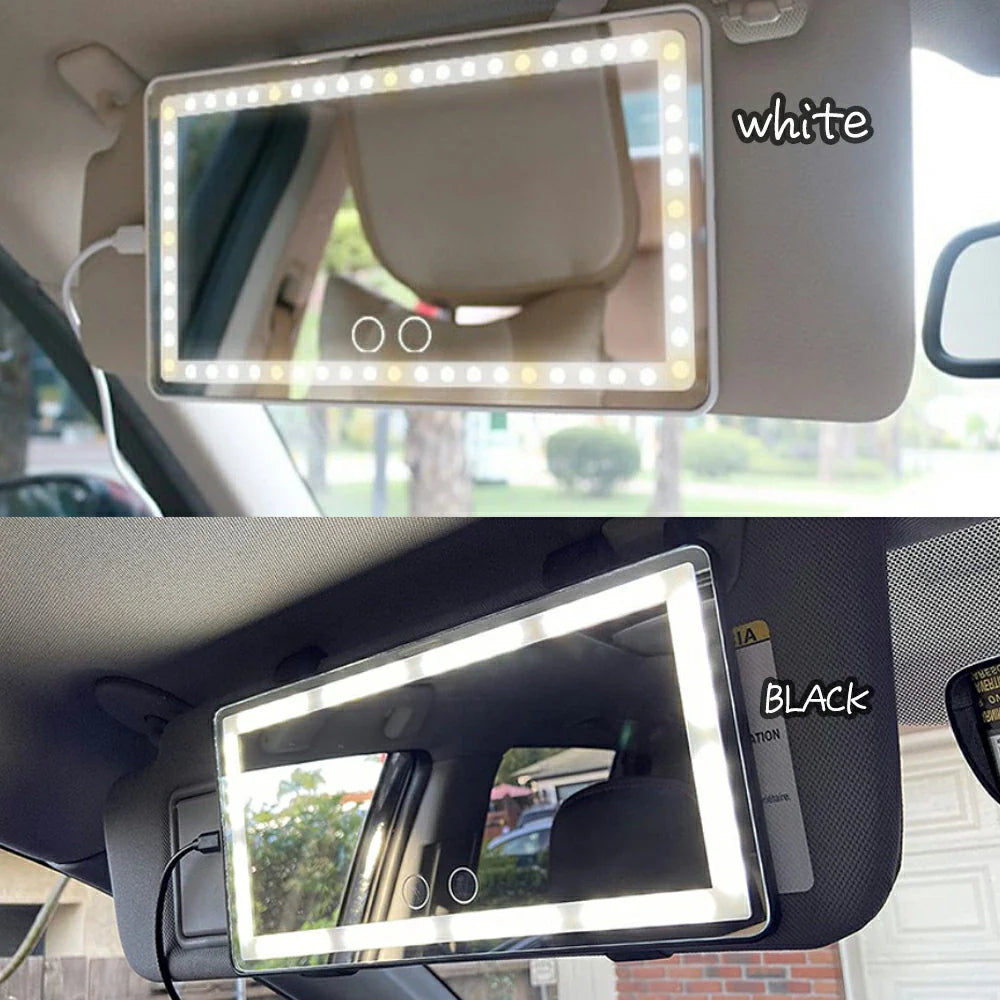 LEDライト付きのサンバイザーメイクミラーは、車内でのメイク直しや身だしなみチェックに最適なアイテムです。内蔵バッテリー搭載でUSB充電に対応、3つの照明モード(昼白色・電球色・ミックス)と無段階調光機能を備え、あらゆるシーンに対応。タッチ式センサーで操作も簡単。軽量&コンパクトな設計で、ほとんどの車に対応します。